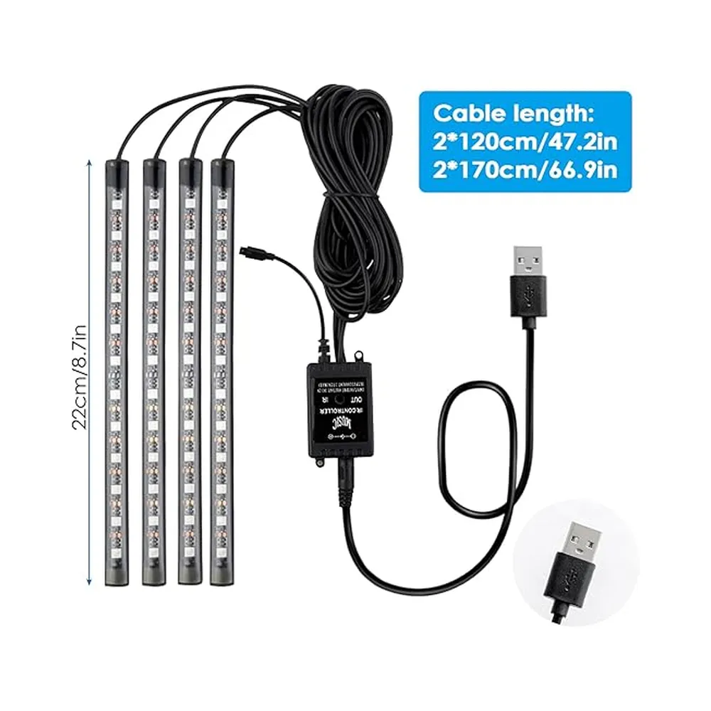 Baxcdyswe 4Pcs 48 Strips Mood Light Car, Waterproof LED Interior Light, Footwell Light, Multicolored Mood Lights with USB Port and Remote Control