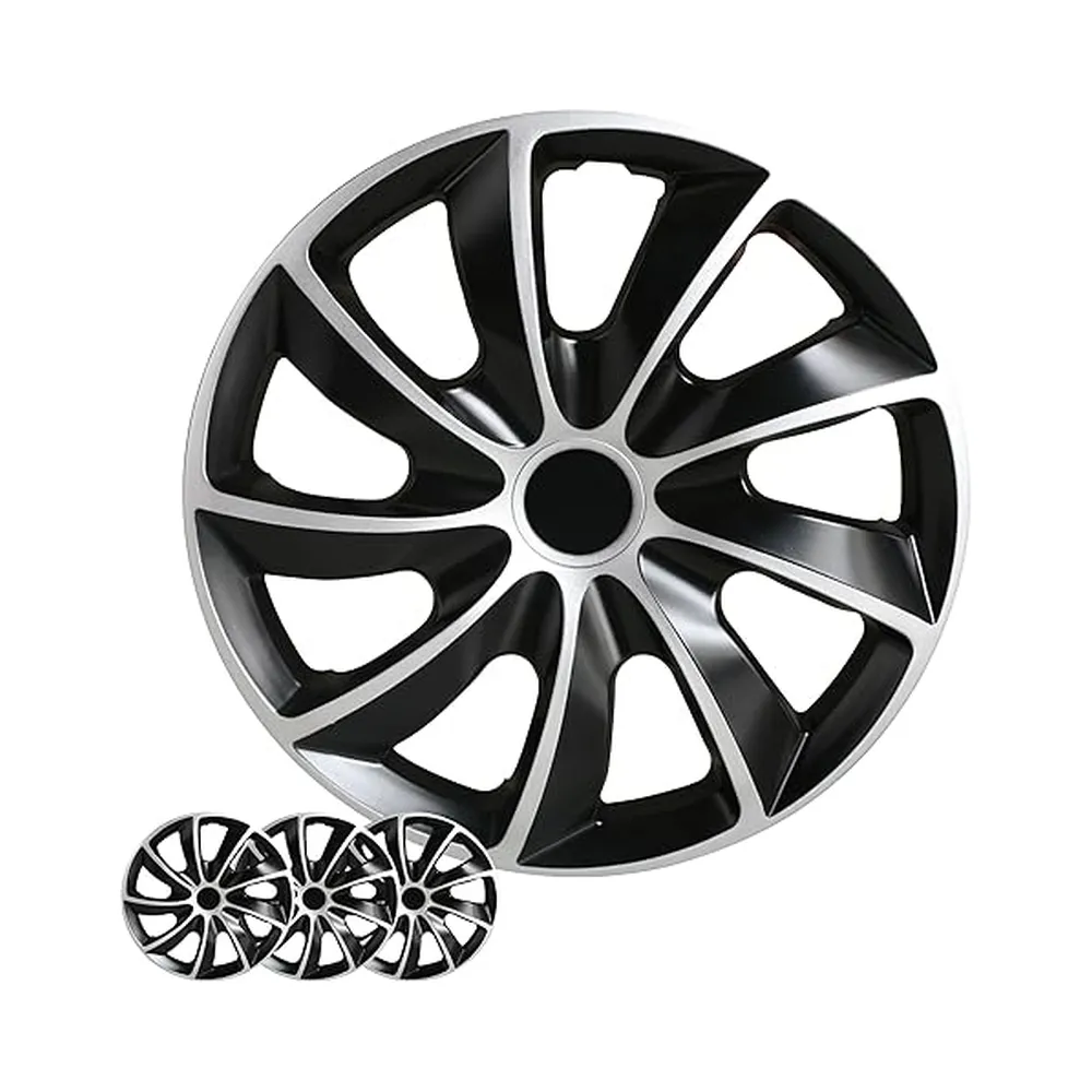• CUSTOMIZE YOUR CAR with luxurious looking hubcaps wheel covers for 17-inch car rims. This set of 4 hub caps in 2-tone black and silver gives your automobile an instant upgrade without breaking the bank.