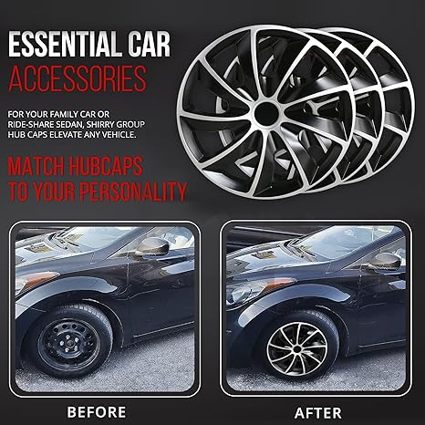• ESSENTIAL CAR-ACCESSORIES for your family car or ride-share sedan, Shirry Group Hub Caps elevate any vehicle. Give a set to your teen for their first car or give a used car more curb appeal for resale.