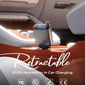 • Retractable design: cigarette lighter USB C – no more cable chaos. The automatically retractable USB-C and iPhone cable pulls back automatically after use. So your car will always stay tidy and the cables are protected from wear, no clutter of cables, only full performance.