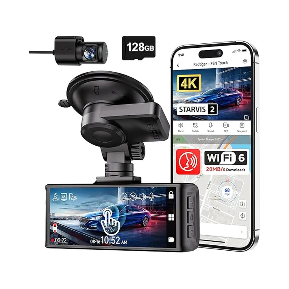 REDTIGER 4K Dash Cam Front and Rear, Touch Screen 3.18 Inch, Free 64GB Card, Car Dash Camera Built-in WiFi GPS, UHD 2160P Night Vision, WDR, Parking Monitor (F7N Touch)