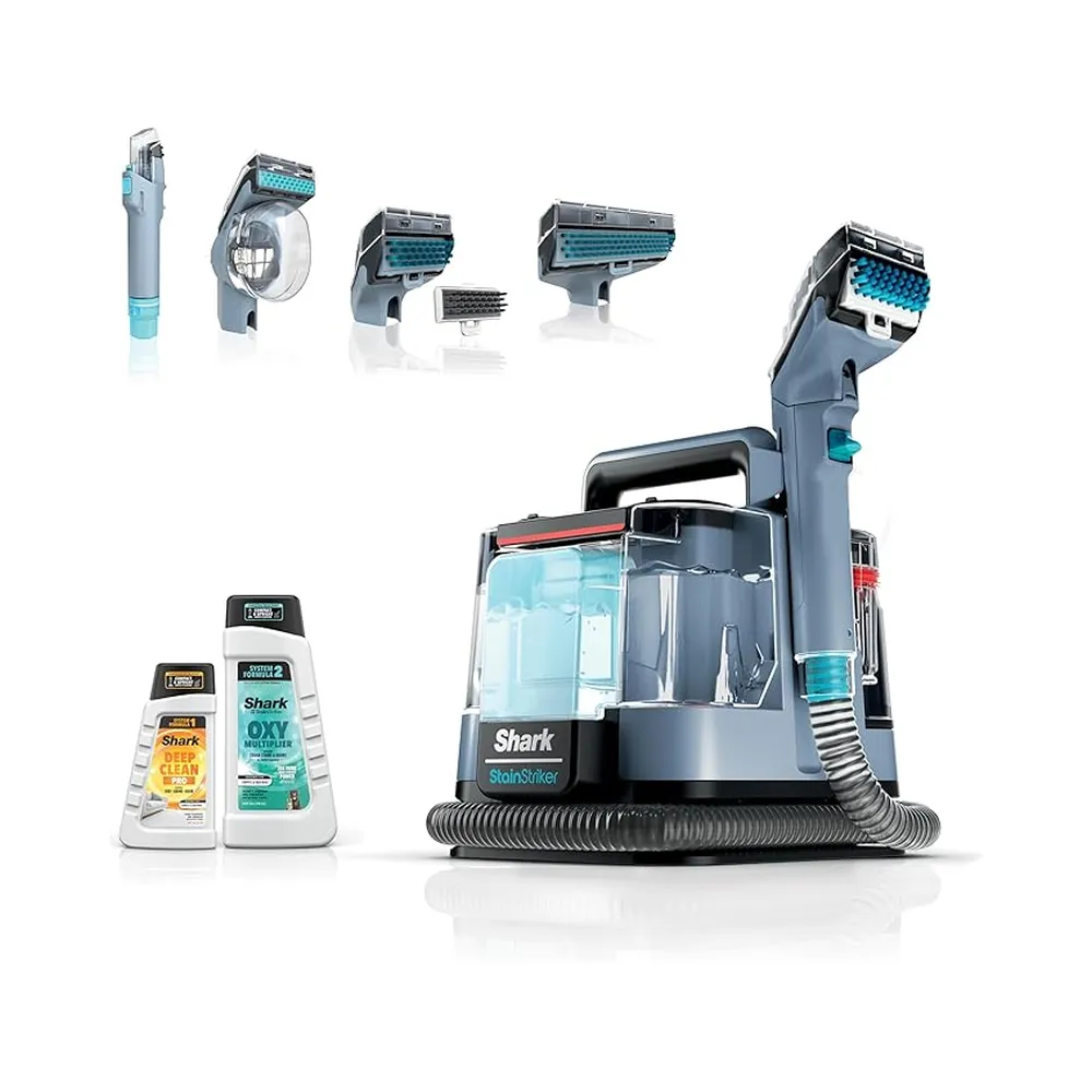 • Shark StainStriker is a portable carpet and upholstery cleaner with pet mess extractor, bonus XL tool, and full-size solutions. Dual-activated formula and ultra-powerful suction remove spots and stains—perfect for pets, cars, and whole-home cleaning.