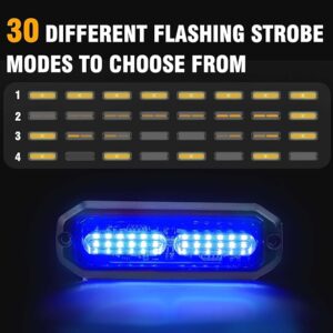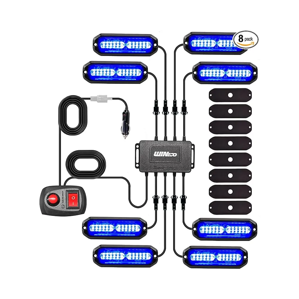 WINECO 8PCS LED Strobe Lights 12V Sync Feature Blue 12LED Emergency Hazard Warning Lights with Strobe Controller for Trucks Vehicles ATV RV Cars Van