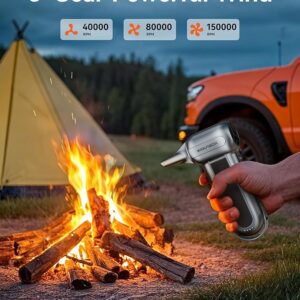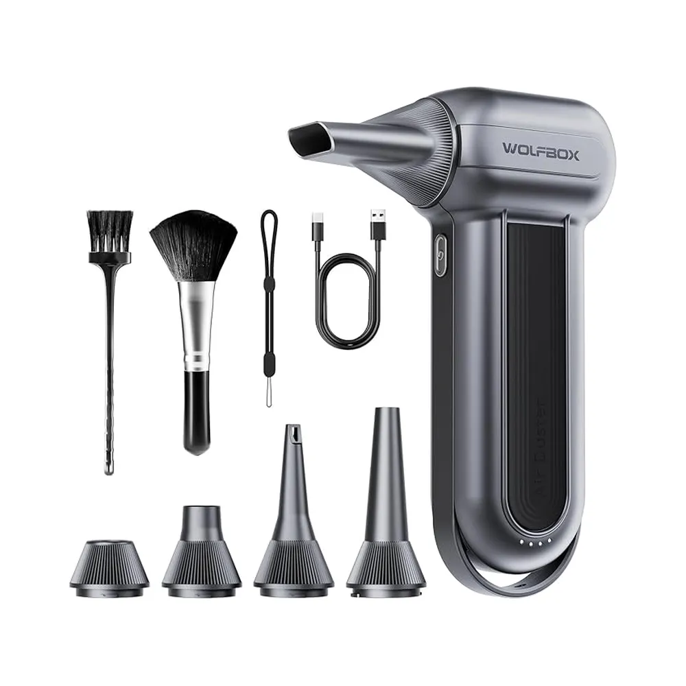 - Versatile Cleaning Tool: Featuring 5 nozzles and 2 brushes, the WOLFBOX electric air duster is perfect for cleaning electronics like PCs and keyboards, as well as for home, car, and outdoor use. It’s also great for inflating gear or managing campfires, making it a must-have for multiple scenarios.